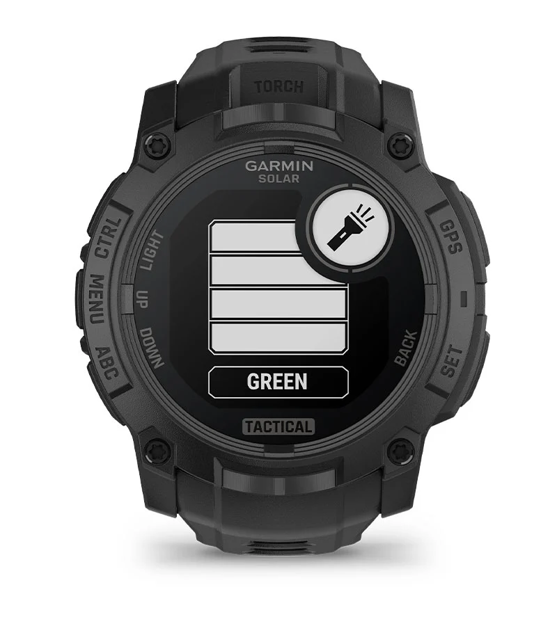 Специальные тактические функции включают в себя активность Jumpmaster, проекцию точек маршрута, двухпозиционный формат GPS, предварительно загруженные тактические активности, скрытый режим, аварийный выключатель и активность Rucking.