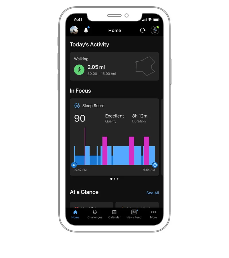 Следите за процессом восстановления вашего организма с помощью нашей функции мониторинга сна . После пробуждения вы получите оценку сна, а также анализ фаз сна, данные пульсоксиметрии и дыхания, а также подробную информацию для улучшения качества сна1.